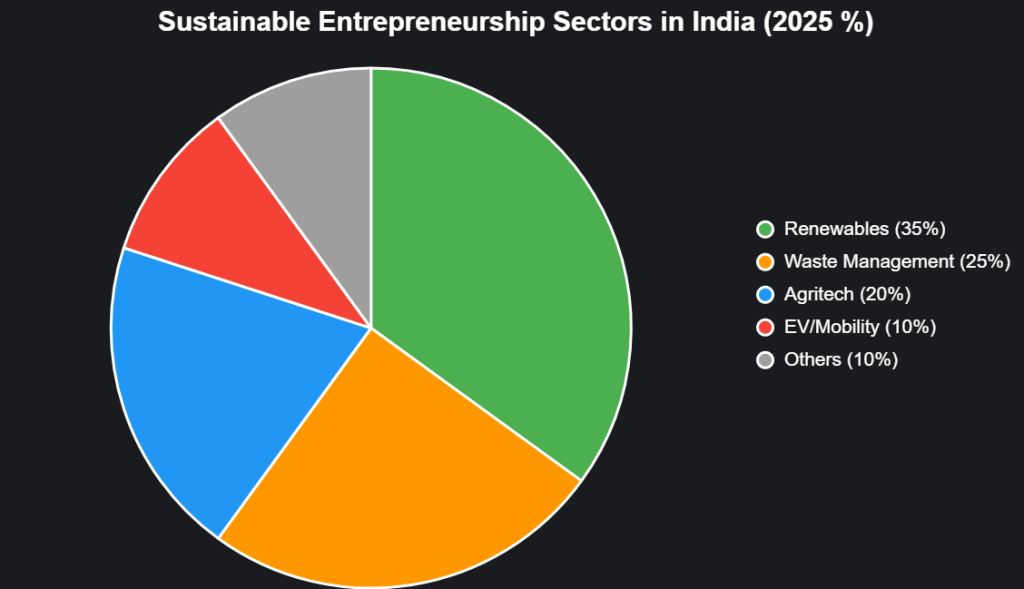 This pie chart slices sustainable entrepreneurship sectors (2025):